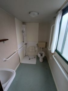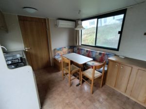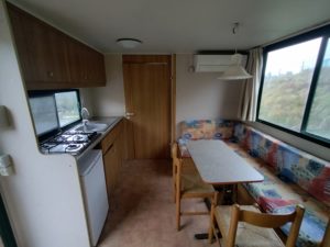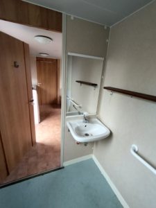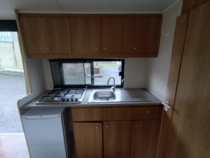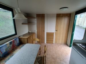 Shelbox Garda Per Tutti 8×3 con 2 camere 4 posti letto, ampio soggiorno con angolo cottura e bagno unico completo, spazzi molto ampi con porte molto grandi che permettono anche il passaggio di una sedia a rottele. Tenute benissimo.